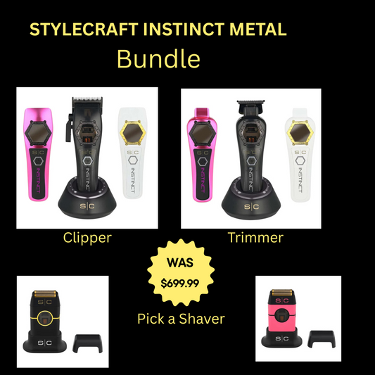 StyleCraft Instinct Metal Edition Bundle – Clipper, Trimmer & Shaver (Black or Pink)