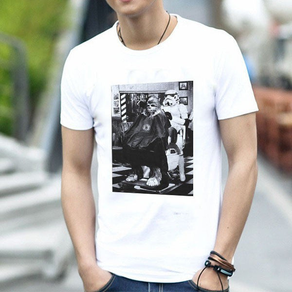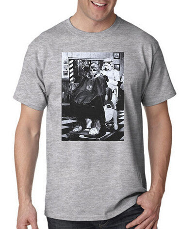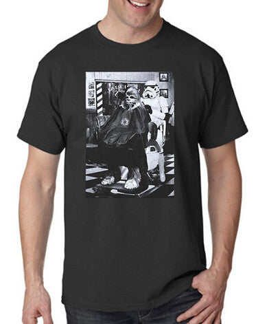 Star Wars Stormtrooper & Chewbacca Barber Shop T-Shirt – Official Licensed Tee for Barbers and Star Wars Fans (Black, White, Grey | 100% Cotton)